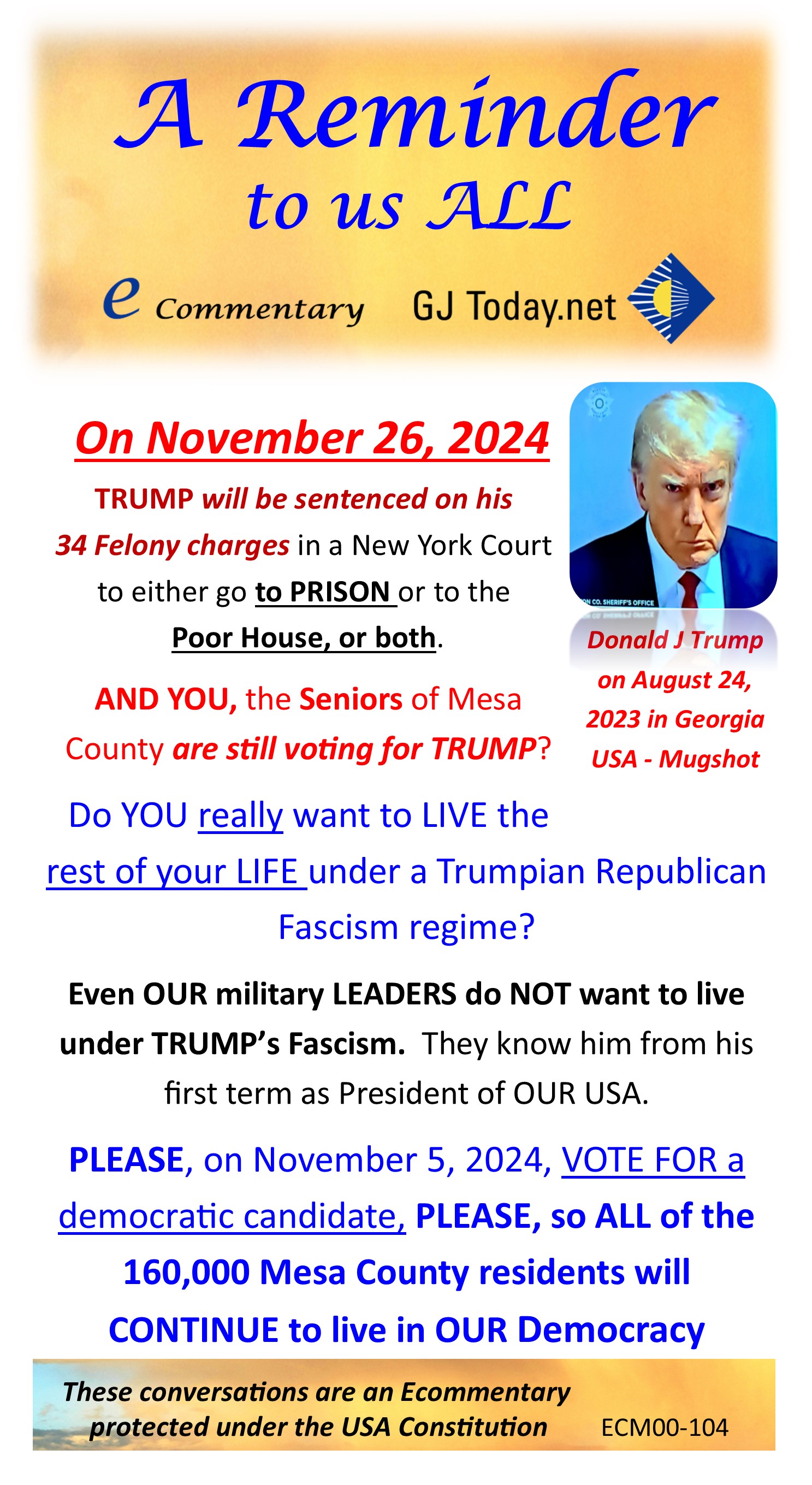 Seniors, IF TRUMP wins, YOU and ALL of the 160,000 Mesa County Residents LOOSE our Freedoms - Trumpian Republican Fascism  - National Events