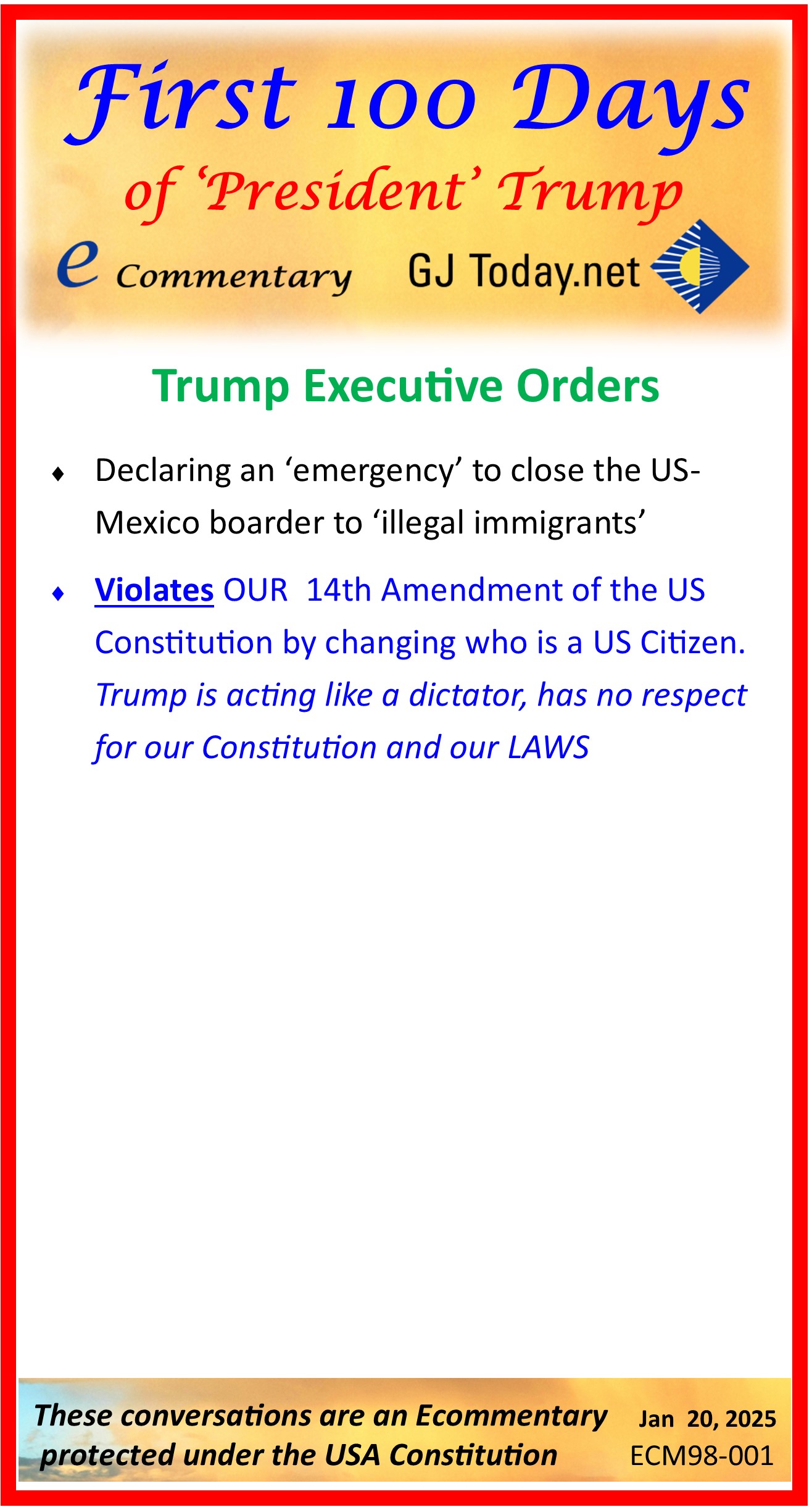 First 100 Days as "President' Trump